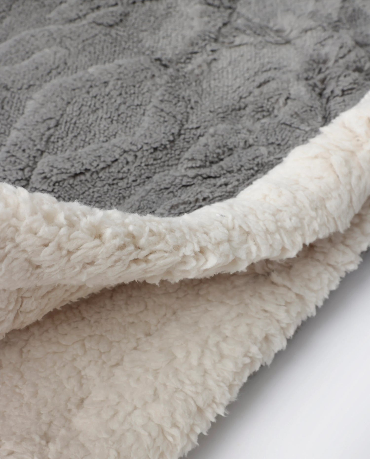 Coperta double-face con diverse texture: una coperta Corel jacquard più morbida e una più calda, realizzata in pile shearling