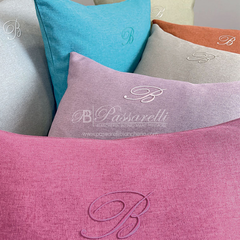 Cuscino arredo in tessuto tinto in filo che unisce eleganza e praticità.