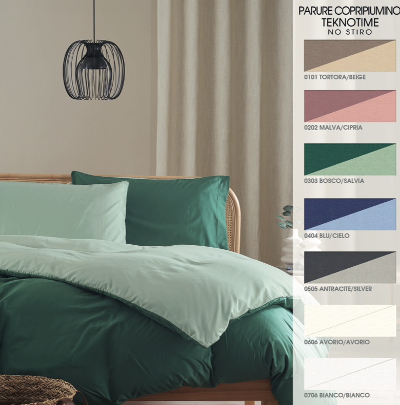 Scopri la praticità senza compromessi con la Parure Copripiumino No Stiro in tessuto tekno time®.