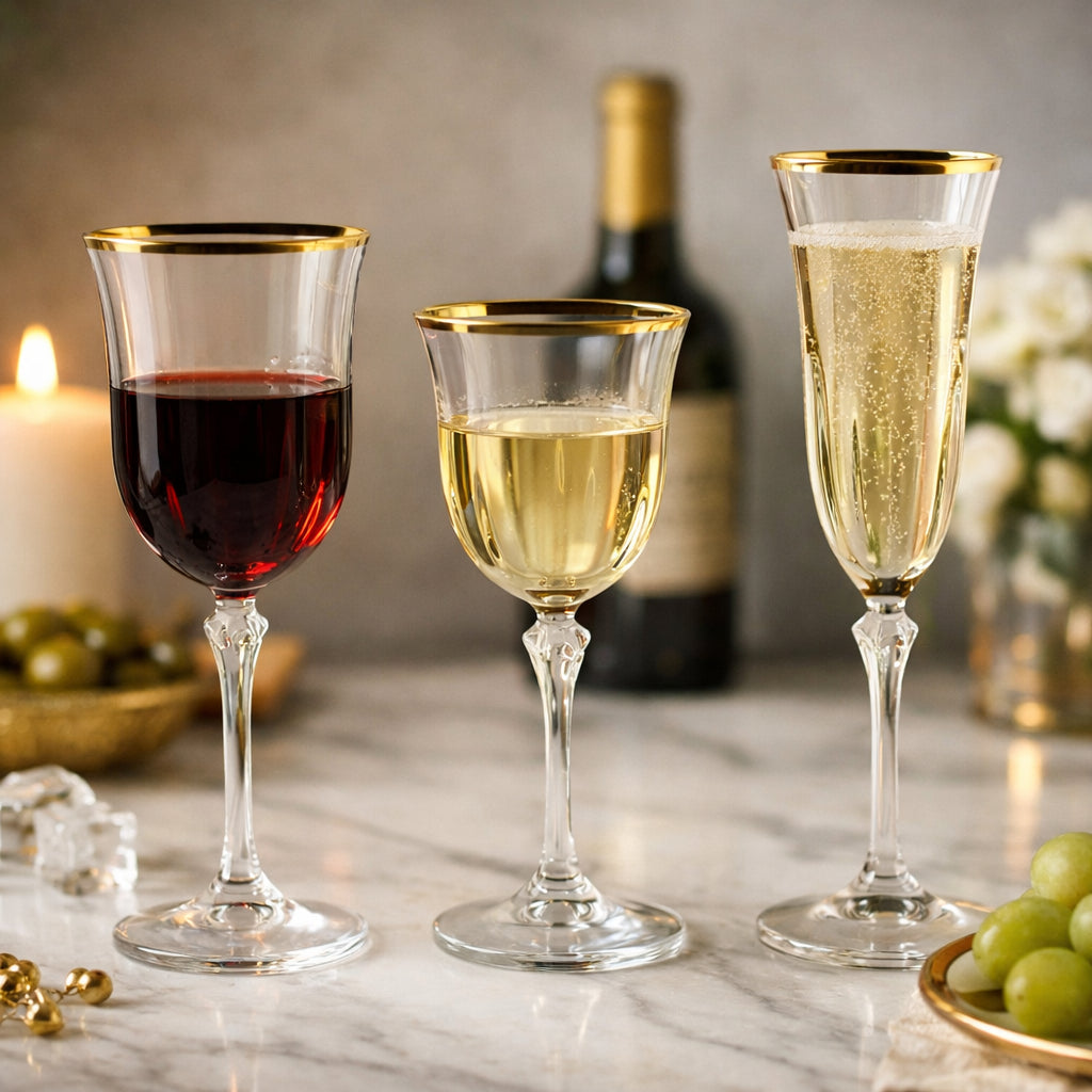 Ogni Calice presenta dettagli dorati raffinati e un design elegante che cattura la luce, trasformando ogni momento in un'occasione speciale.