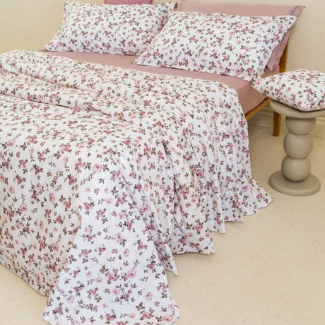 Battaglia Koordiniertes Bettset aus reinem Leinen und Rebrodè Aurora-Spitze