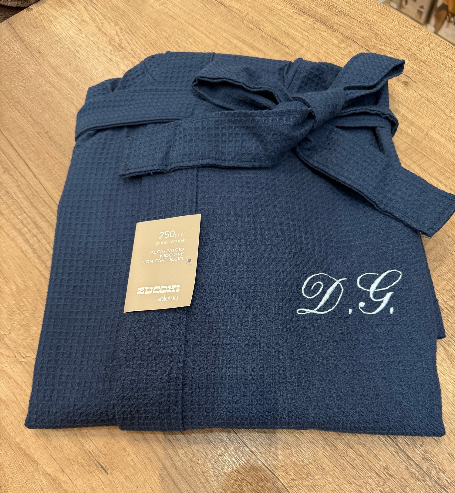 Der Bademantel aus Wabenbaumwolle hat den Vorteil, dass er sehr saugfähig ist und dabei nur wenig Platz einnimmt. Ideal für Sport oder Reisen, es ist ein hochwertiges Kleidungsstück