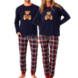Pigiama unisex in caldo cotone composto da maglia blu con dolce orsetto ricamato e pantalone lungo a quadri scozzesi.