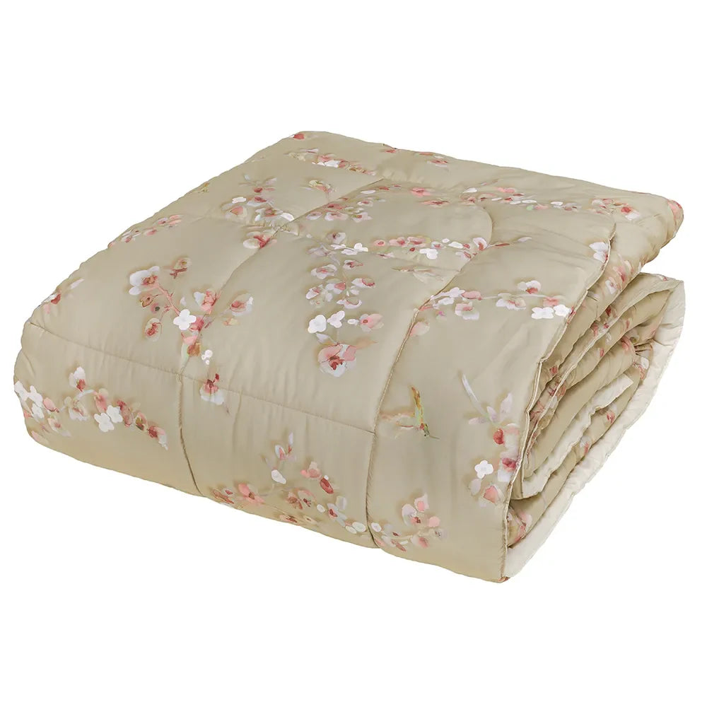 Trapunta realizzata in raso di puro cotone 300 T.C. stampato in digitale con delicati motivi floreali esaltati dalla trapuntatura piazzata e rifinita a mano con angoli stondati. Vesti la tua camera da letto con le meravigliose fioriture dei giardini mediterranei e con la raffinatezza della collezione Bloom.