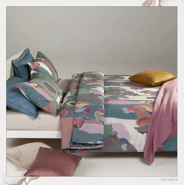 Trapunta double-face realizzata in percalle di cotone 200 T.C. RICICLATO stampato in digitale con motivi floreali esaltati dalla trapuntatura a quadri; rifinita a mano con angoli stondati. Vesti la tua camera da letto con la nuova collezione sostenibile di Tessitura Randi.