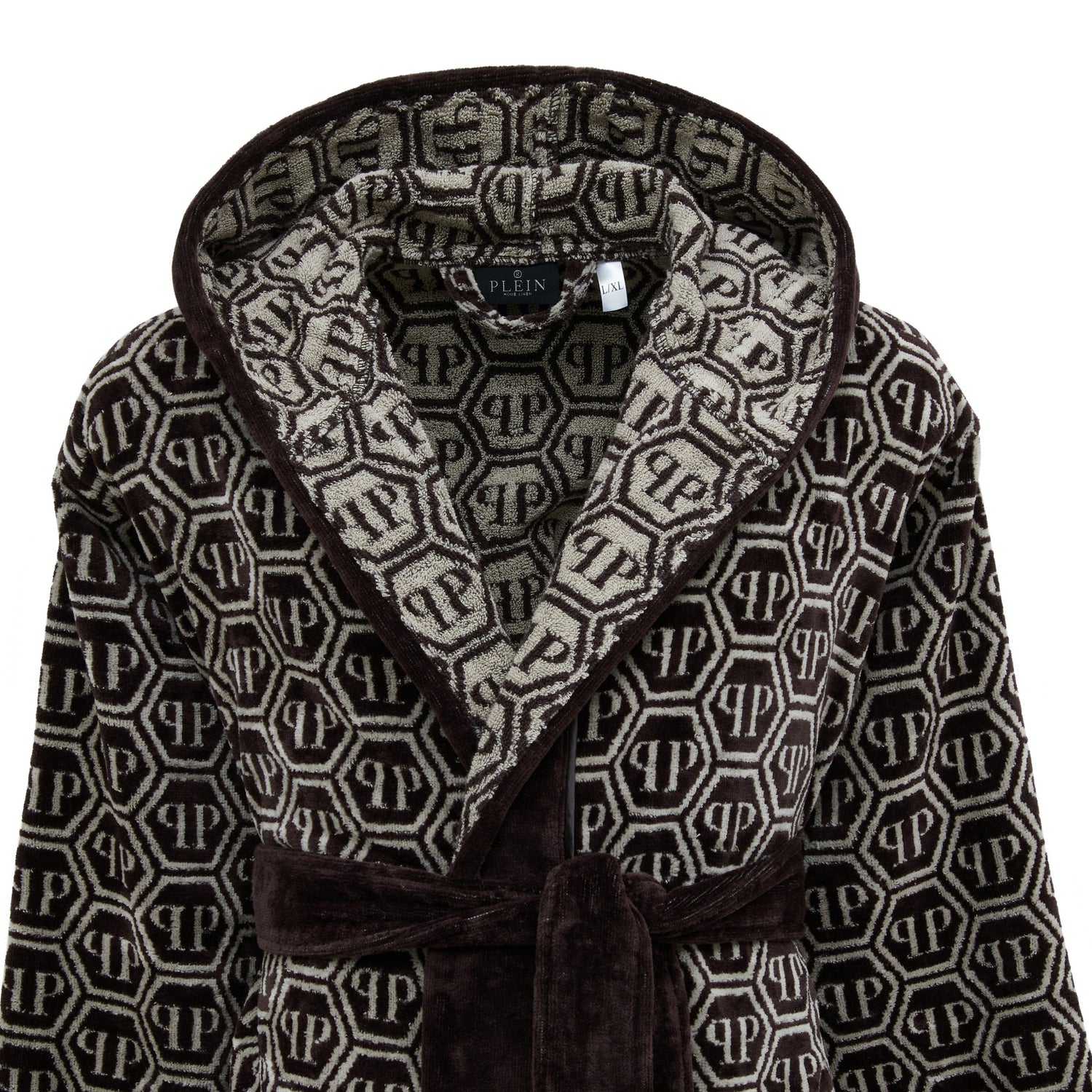 Philipp Plein Accappatoio con Cappuccio Pattern Moderno in Spugna - XXL / BROWN ist auf Lager und wird versandt, sobald es wieder verfügbar ist