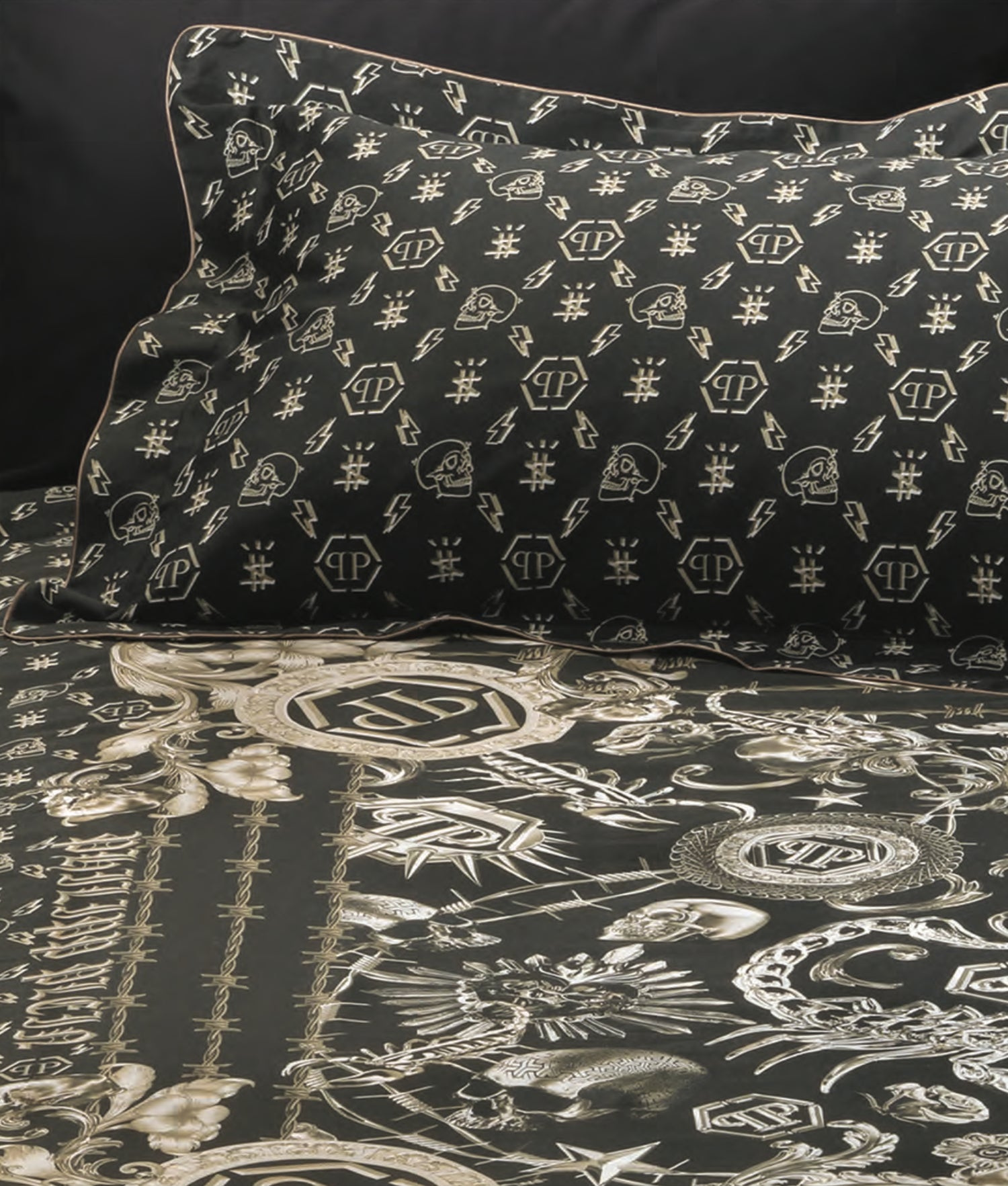 Scopri il lusso del riposo con la Copripiumino di Philipp Plein, realizzato in pregiato raso di cotone.