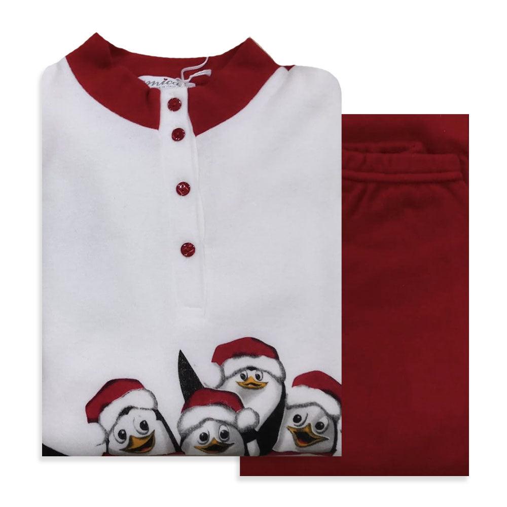 Warmer Fleece-Pyjama für Damen mit süßem Pinguin-Muster und Weihnachtsmütze.