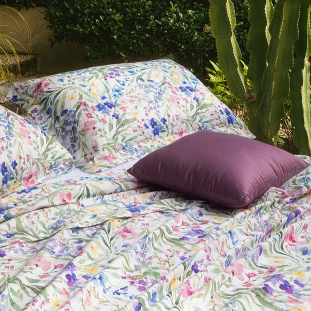 - Il completo letto è composto da: 1 lenzuolo superiore in Raso Satin 100% cotone stampa digitale mis.260x290, 1 lenzuolo inferiore in Raso Satin 100% cotone con angoli tinta unita mis.180x200+27, 2 federe in Raso Satin 100% cotone stampa digitale mis.52x82 con 3 volants