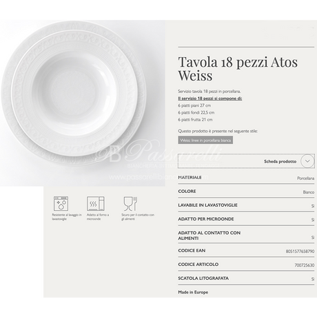 Servizio tavola 18pz ATOS WEISS in porcellana By Weissestal