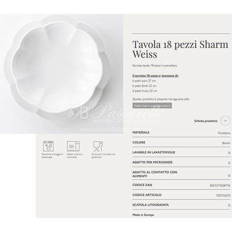 Servizio tavola 18pz SHARM WEISS in porcellana By Weissestal