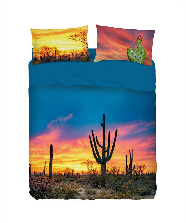Il disegno incantevole dei cactus nel panorama del National Park, dipinto su puro cotone blu, rende questo copriletto unico e suggestivo per una camera da letto di stile.