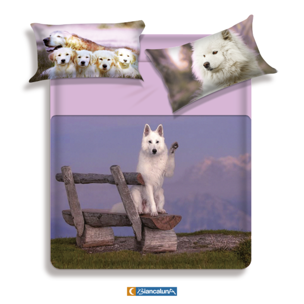 Completo lenzuola copriletto in cotone con federe a sacchetto.