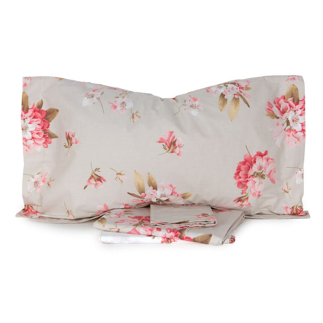 Mirabello Completo Lenzuola Copriletto in Percalle di Cotone Matrimoniale Rododendri S100