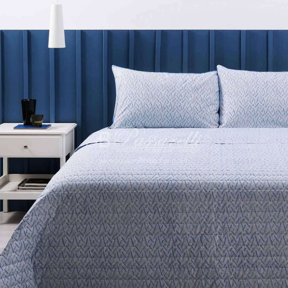 Completo Lenzuola Matrimoniale Elettra di Zucchi in puro cotone, disegno moderno nelle tonalità di Celeste ed Azzurro