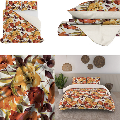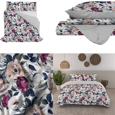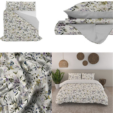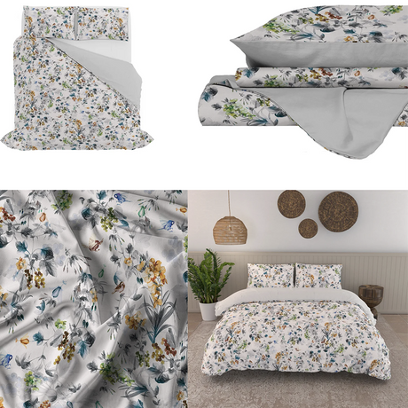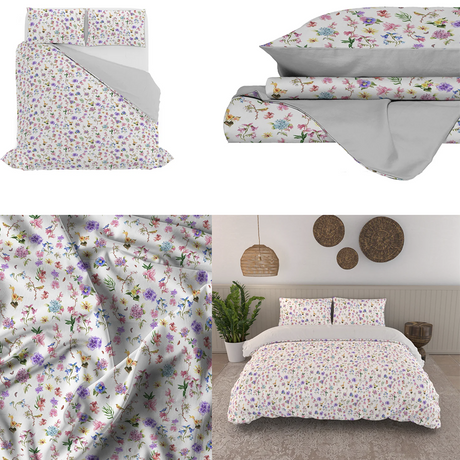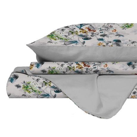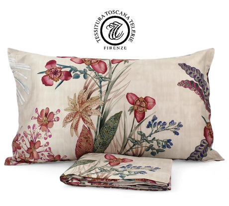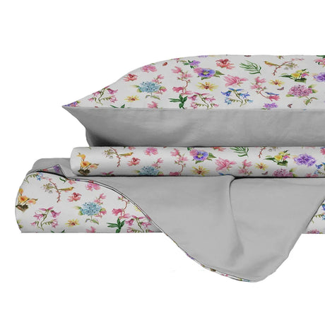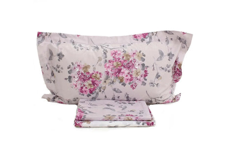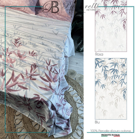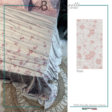 Mirabello Completo Lenzuola Copriletto in Percalle di Cotone Matrimoniale Rododendri S100