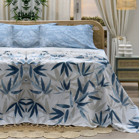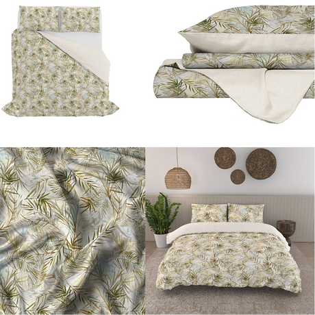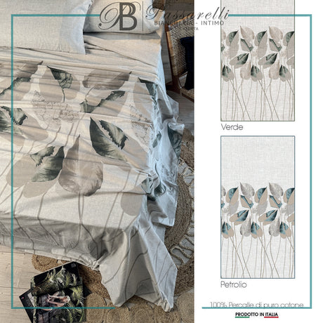 Maè Completo Lenzuola Copriletto Matrimoniale in Percalle Foglia 402 S44