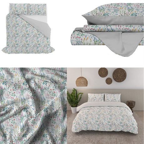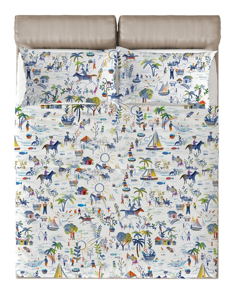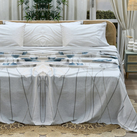Mirabello Completo Lenzuola Copriletto in Percalle di Cotone Matrimoniale Fresie S100