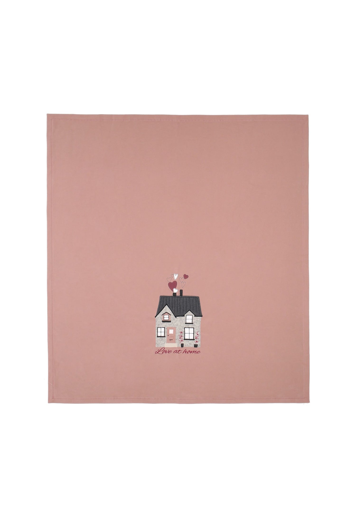 Morbidissimo e raffinato coperta plaid Maryplaid, accuratamente rifinito, Il design romantico con la casetta ricamata e la scritta “Love at Home”