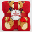 Il plaid Maryplaid 150x180 dal design unico con orsetto con sciarpa scozzese su sfondo rosso vivo lo rende un accessorio decorativo irresistibile, capace di unire tenerezza e spirito natalizio.