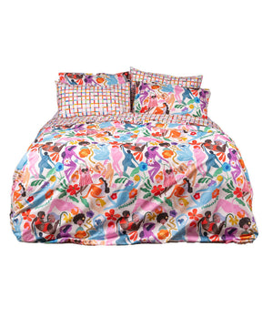 Le figure sinuose e colorate si intrecciano con l'energia di un'opera moderna, perfette per chi ama lo stile audace e la qualità artigianale toscana. Non è solo biancheria: è una dichiarazione di personalità, un rifugio per gli spiriti liberi che desiderano circondare il proprio riposo di bellezza e significato.