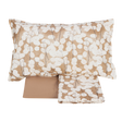 I suoi medaglioni opalescenti creano sovrapposizioni sulla percalle di puro cotone, regalando un effetto spray che si adatta perfettamente ai fondi vaporosi grigi, tortora o verdi.