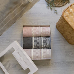 Oggi vi presentiamo il set da 3 Asciugamani e Ospiti Murano, custoditi in questa particolare confezione ideale anche come regalo! I colori al suo interno sono Cipria, Grigio e Tortora.