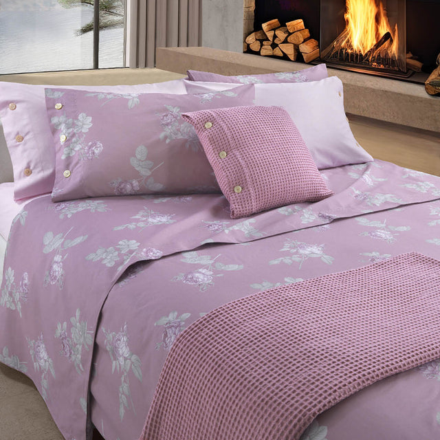 Realizzata in percalle di puro cotone, questa collezione coniuga comfort e stile con una fantasia floreale sofisticata che cattura l'essenza della natura. Il cotone puro garantisce morbidezza al tatto e traspirabilità, assicurando notti di riposo sereno.