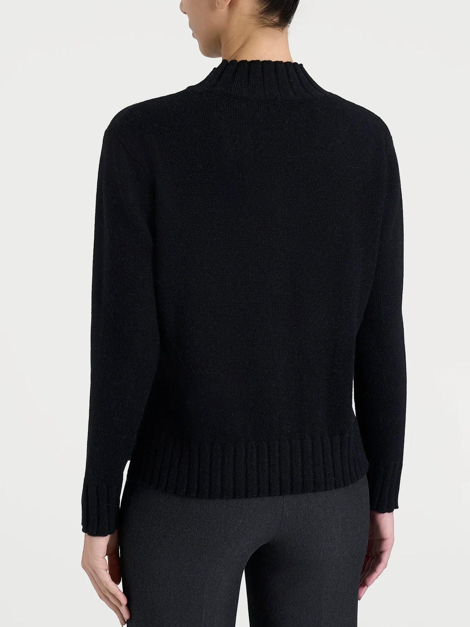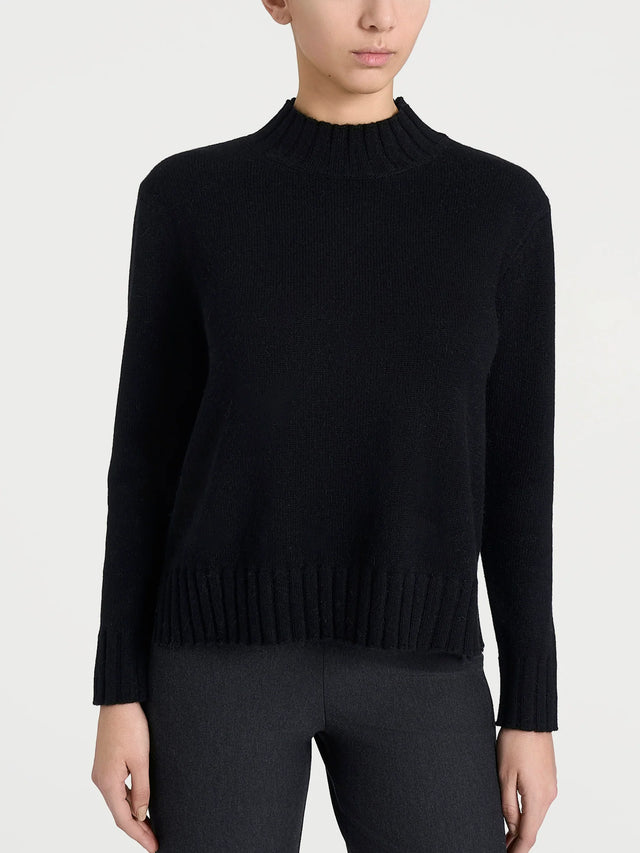 spacchetti laterali aggiungono un dettaglio di stile, mentre la bordatura a costina 1x1 definisce con eleganza i contorni del capo.