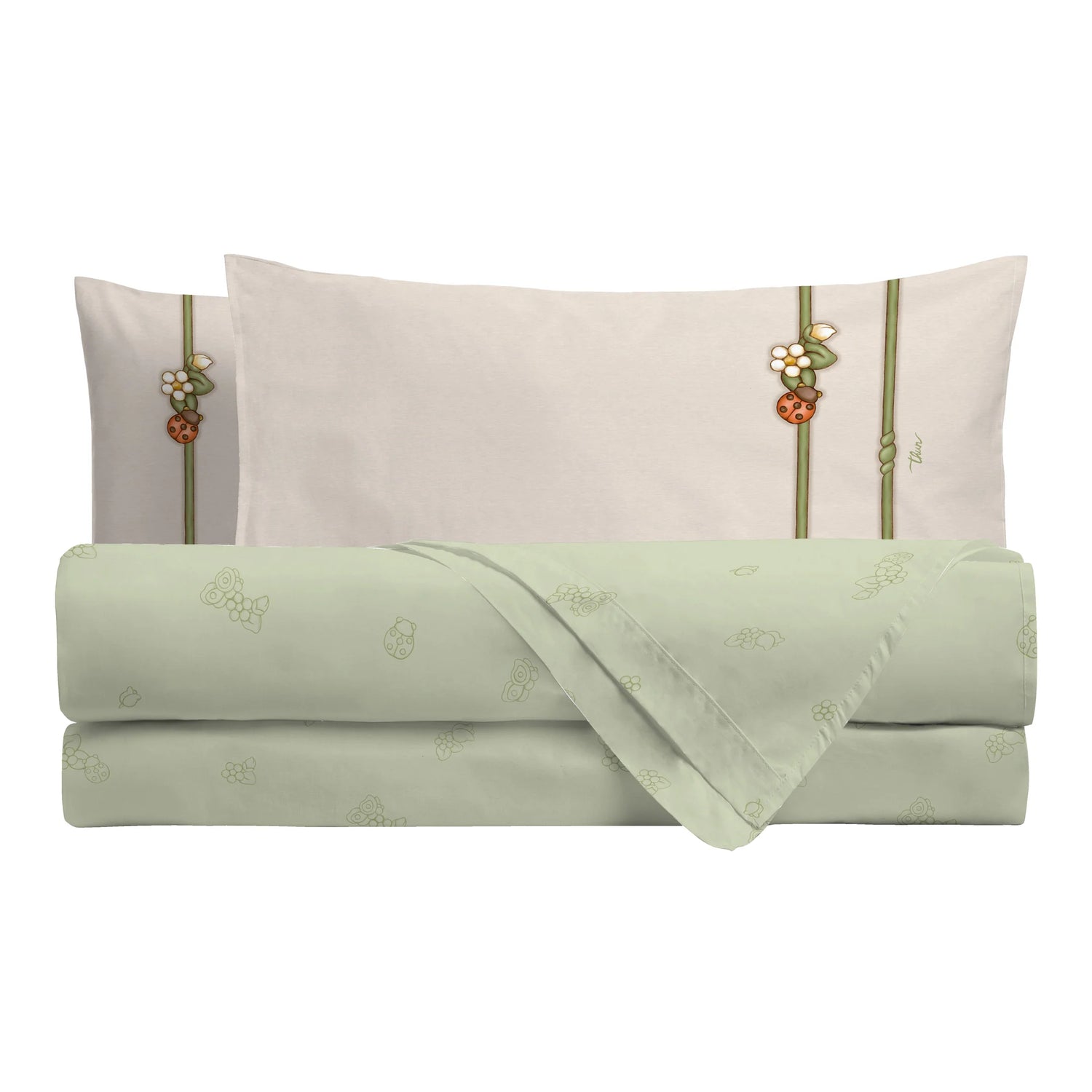 THUN® Completo Letto Matrimoniale in Cotone Country Bloom Green
