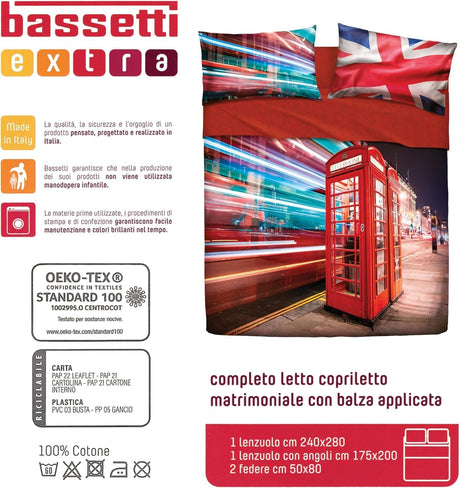 Bassetti completo Lenzuola Copriletto Matrimoniale IMAGE London 2411S68
