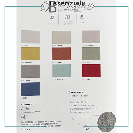 Maison Sucrée Tovaglietta da colazione in vinile Tinta Unita Essenziale 2405S60 - Vari Colori