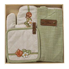 THUN® Set Vassoio con Guantone + Grembiule + Presina Country Bloom Beige 2504S40