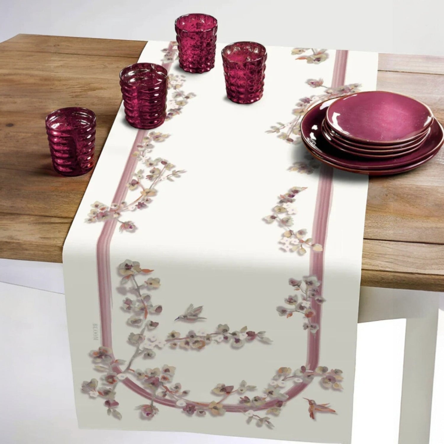Runner stampato in digitale con delicati motivi floreali realizzato con tessuto 100% cotone. Confezione con angolo a cappuccio di 2,5 cm. Il prodotto viene consegnato in un’elegante scatola. Vesti la tua tavola con le meravigliose fioriture dei giardini mediterranei e con la raffinatezza della collezione Bloom.