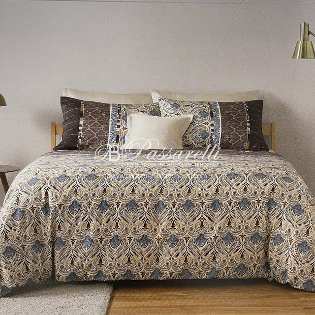 Il completo Copripiumino matrimoniale Nairobi di Bassetti Granfoulard unisce il fascino delle decorazioni classiche con uno stile etnico sofisticato.