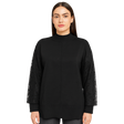 Il collo alto definisce un look sofisticato, mentre gli spacchi laterali assicurano comfort e libertà di movimento. Le maniche rivestite in pizzo donano un tocco femminile e raffinato, perfetto per ogni occasione in cui vuoi distinguerti con stile.