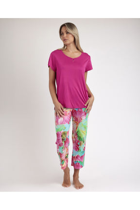 Realizzato in morbida Viscosa, questo pigiama maniche corte offre una vestibilità comoda e leggera.