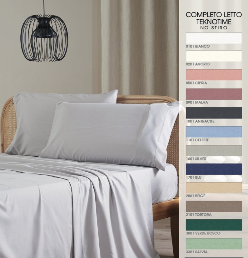 Le Lenzuola che si auto-ordinano: il completo Maè by Via Roma 60 in tessuto Teknotime® elimina la fatica dello stiraggio, lasciandoti più tempo per ciò che conta davvero.