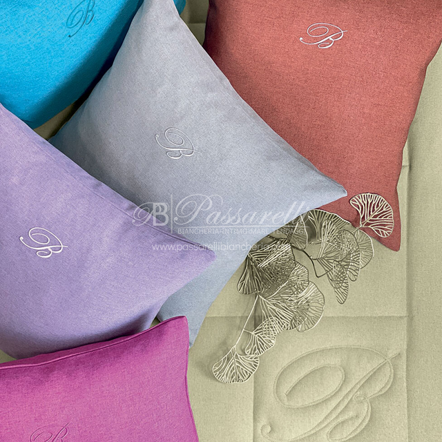 Cuscino arredo in tessuto tinto in filo che unisce eleganza e praticità.
