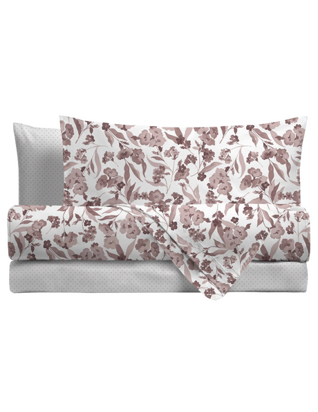 Rebecca Home Completo Lenzuola Matrimoniale in Flanella Nicol Fiore D50