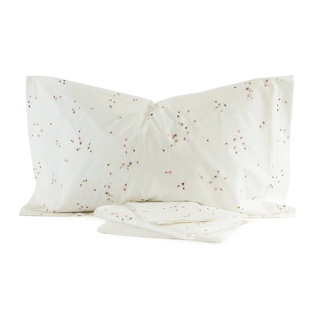 Sopra e federe con fondo bianco latte e delicata fantasia floreale