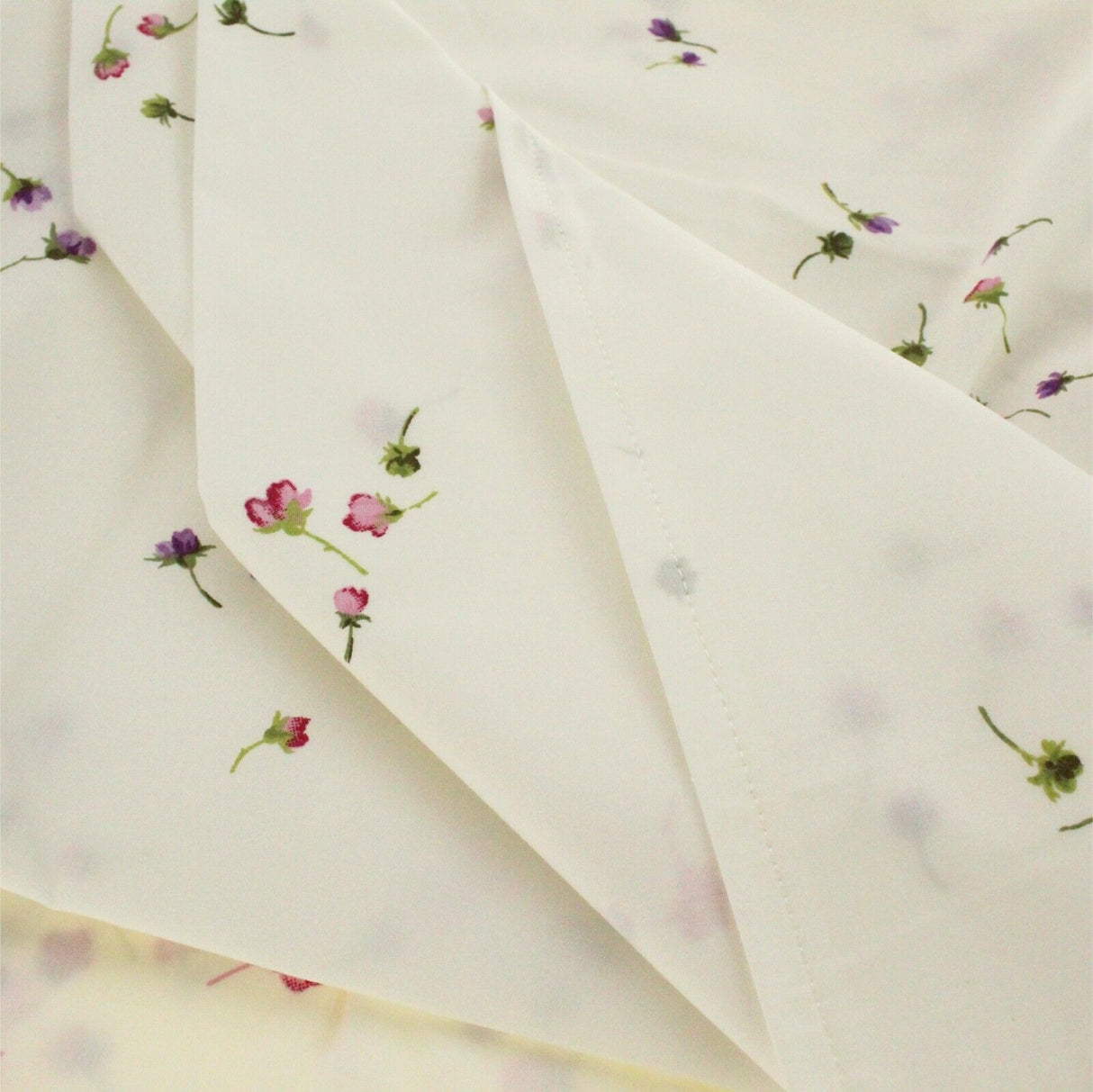 Con delicati boccioli di rosa e morbido percalle di cotone, il lenzuolo matrimoniale trasmette una sensazione di leggerezza e primavera.