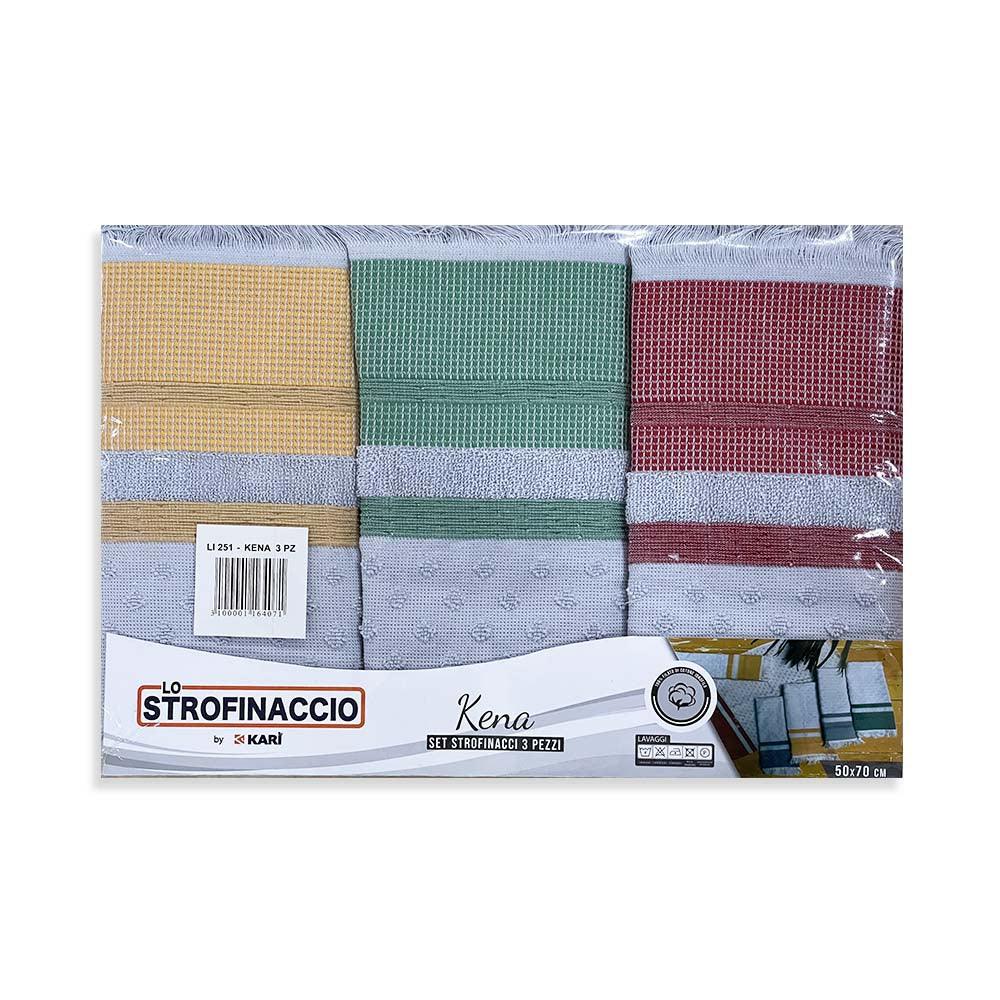 Confezione 3 Strofinacci / Canovacci in Spugna di Puro Cotone Kena S70