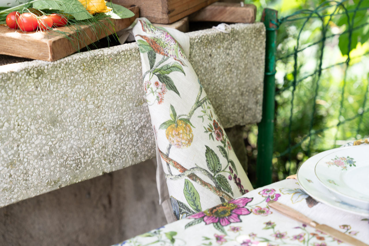 La tavola da pranzo diventa un quadro pittorico con il servizio da tavola di Tessitura Toscana Telerie.