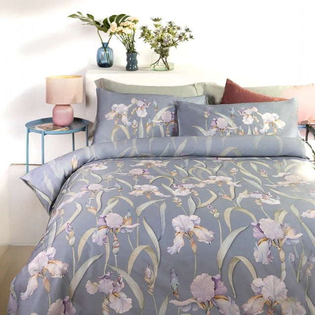 Parure copripiumino realizzata in raso di puro cotone 300 T.C. La parte superiore della sacca e delle federe sono stampati in digitale con delicati motivi floreali; la parte inferiore della sacca e delle federe è in raso tinta unita. Vesti la tua camera da letto con le meravigliose fioriture dei giardini mediterranei e con la raffinatezza della collezione Bloom.
