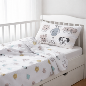 Questo set combina design tenero con animali in stile delicato su uno sfondo rosa tenue, creando un'atmosfera accogliente e rassicurante nella cameretta.