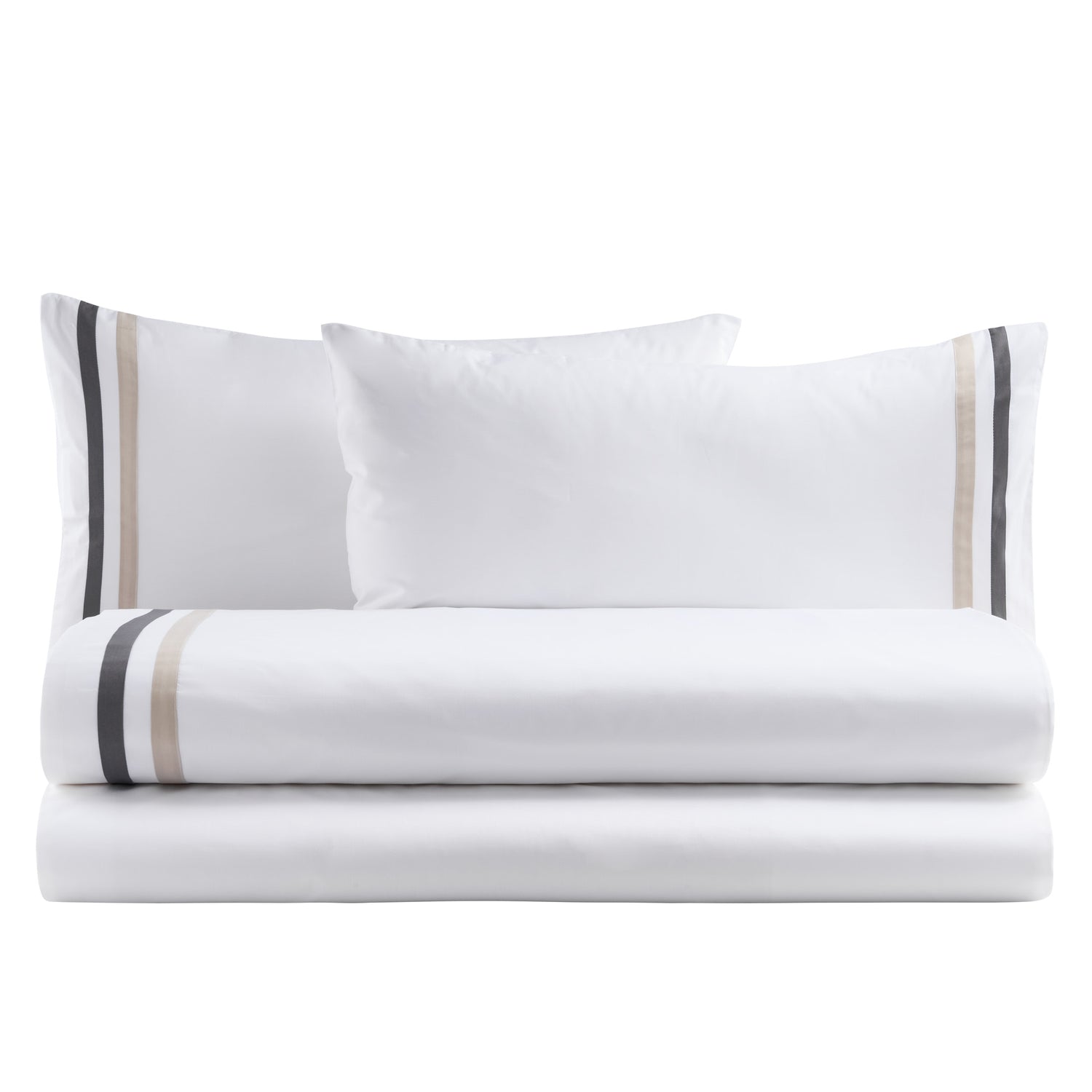 Completo Lenzuola Matrimoniale Biancoperla in tessuto di cotone percalle pregiato.