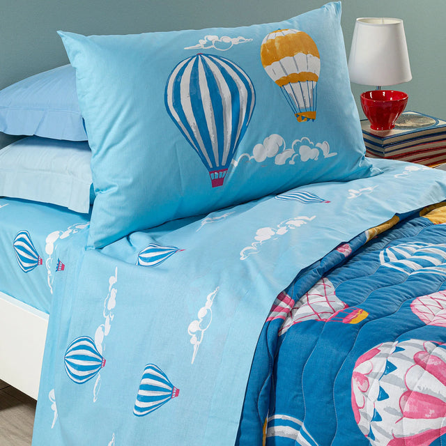 Realizzato in cotone di alta qualità, garantisce comfort e traspirabilità per una notte di riposo sereno. Il design vivace, adornato da fantasie di mongolfiere, renderà la tua stanza un posto incantevole.