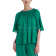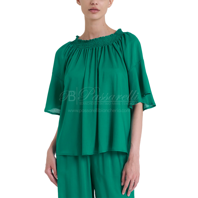 Blusa in leggera e compatta viscosa, collo a barchetta con elastico e maniche a lunghezza gomito