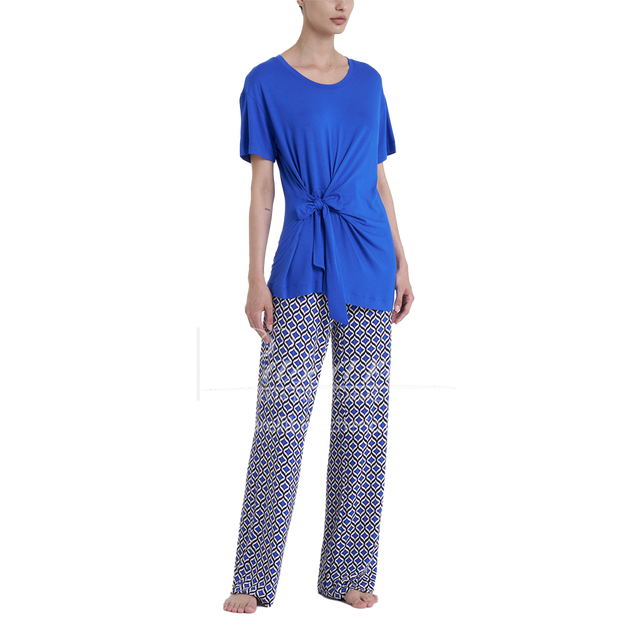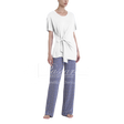 Realizzata in morbida viscosa, la sua manica corta e l'effetto arricciato con fiocco laterale rendono questo capo unico.
